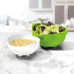 - Wash, soak, and drain fruits and vegetables in one vessel!