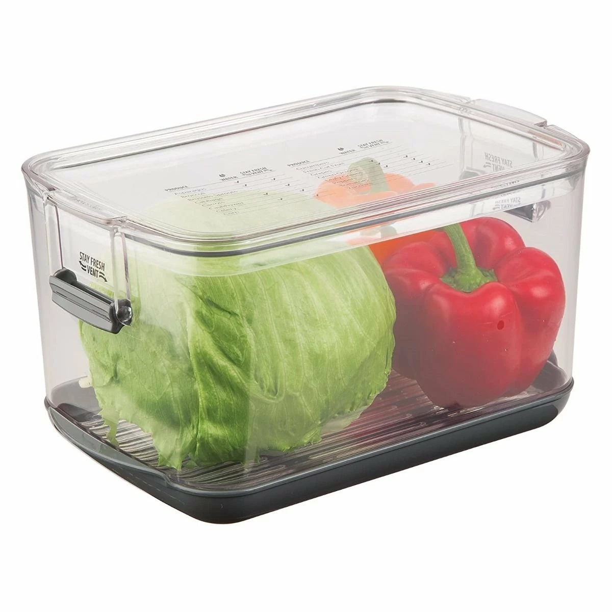 - Stay fresh vent tab on each side, allows air to flow through the container